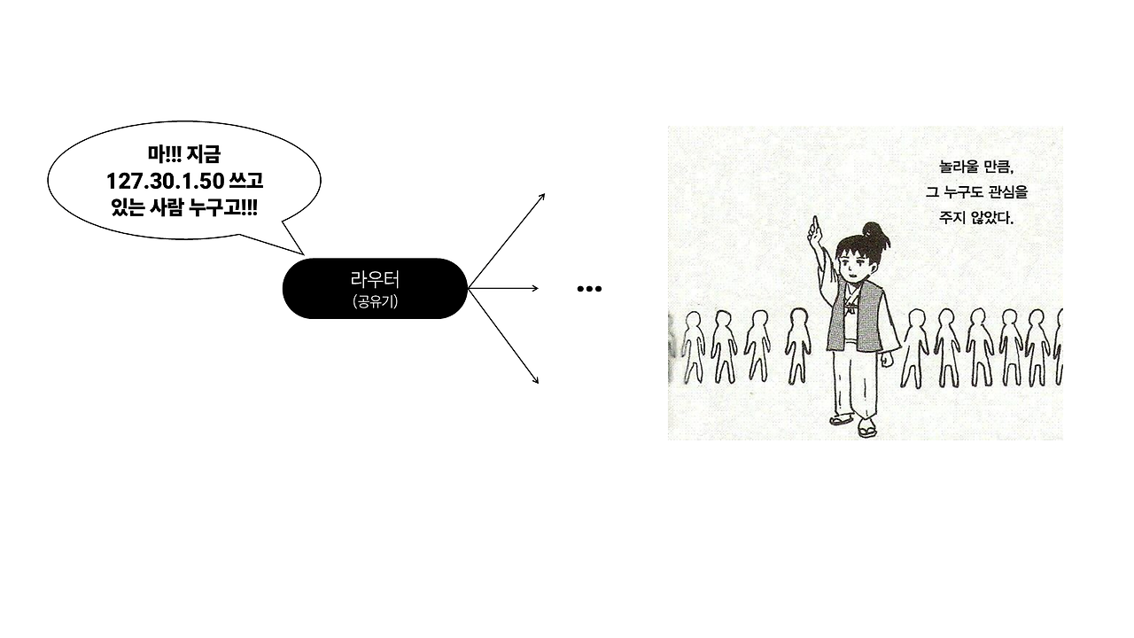 이를 위해서는 ARP라는 프로토콜을 통해 MAC을 알아내야하는데, 그냥 로컬 네트워크 안에서 “이 IP 주소를 가진 사람 누구야? 너 MAC 주소 좀 알려줘~” 라고 냅다 소리를 지르는 것이다(브로드캐스트). 그러면 그 IP를 가진 장치가 자신의 MAC을 응답해준다.