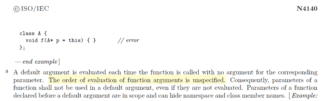 기타 다른 이유에 따라 함수 인자에 대한 평가 순서가 존재한다고 잘못 알고 계신 경우, 아래 자세한 설명을 확인하세요.