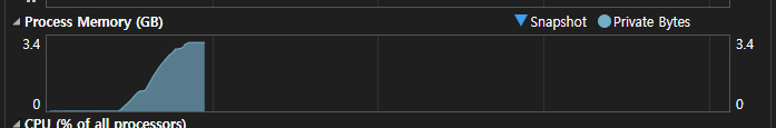 성능 측정을 하면서 알게된 건데, 어마어마한 메모리 누수가 있다…! 창을 Resize할 때 마다 메모리가 기하급수적으로 증가한다. 몇번 Resize 드래그 몇 번 했더니 3.4GB를 먹는 미쳐버린 상황.