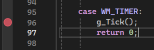 일단 Bottleneck이 어딘지 찾아보기 위해 적당히 break point를 걸었다. 여기는 계속 루프를 돌기 때문에 disable 해놓고 디버거 켜고 화면 크기 쫙 키운 다음에 enable 했다.