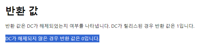 게다가, DC가 제대로 해제되지 않으면 0을 반환하기 때문에 if문으로 잘 처리해두었으면 애초에 일어나지 않았을 누수였다. 사실 빠르게 구현한다고 예외처리를 스스로 생각하기에도 매우 게을리했는데, 이 부분을 많이 반성하게 되었다.