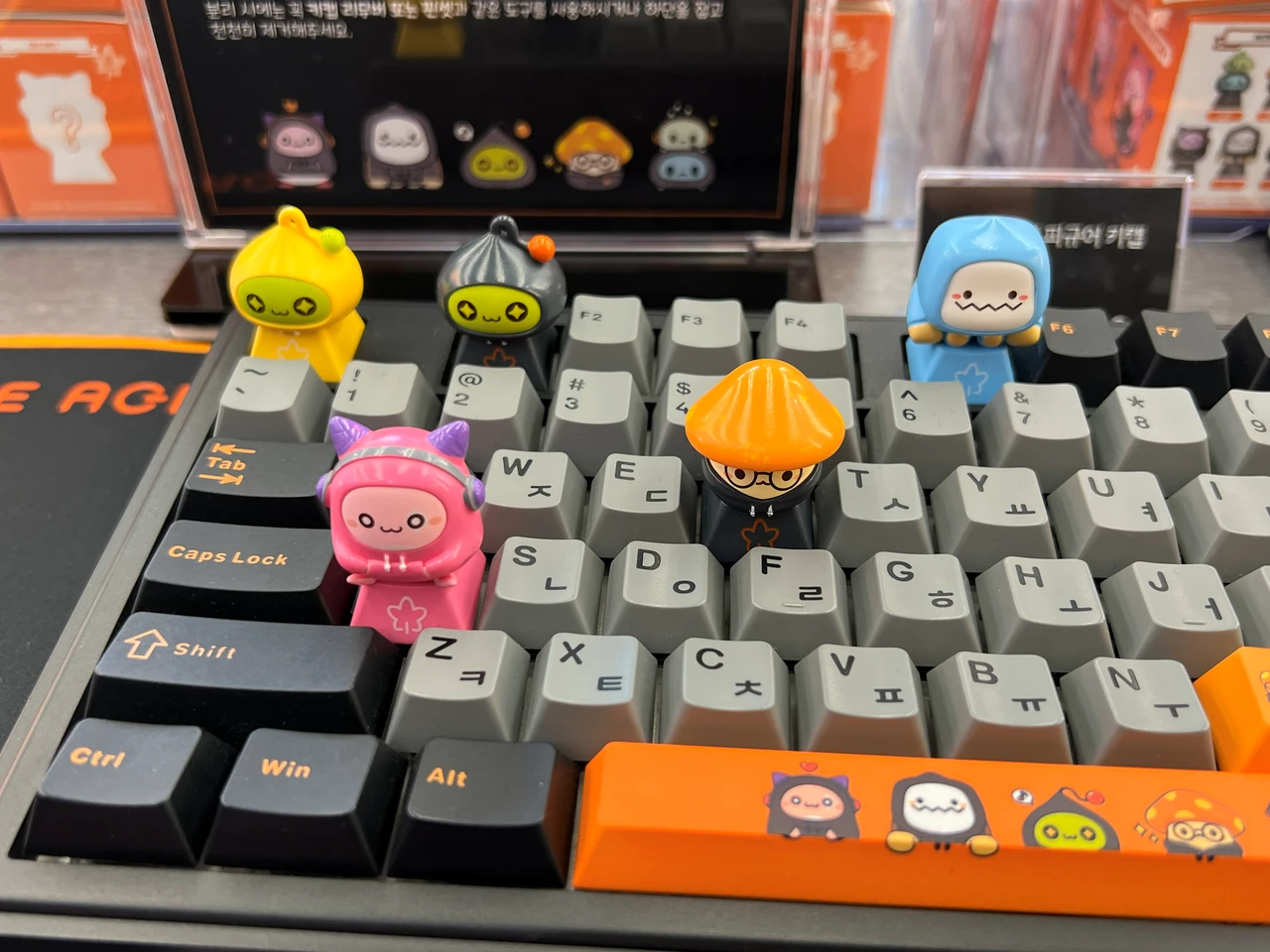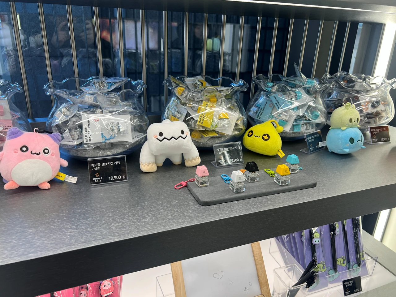 그 외에도 자리에 있던 키보드와 피규어 키캡, 접시, 인형 등 다양한 굿즈가 있었다. 다만 어디까지나 넓은 PC방 한켠에 마련된 공간일 뿐이므로, 커다란 굿즈샵을 기대해서는 안된다.