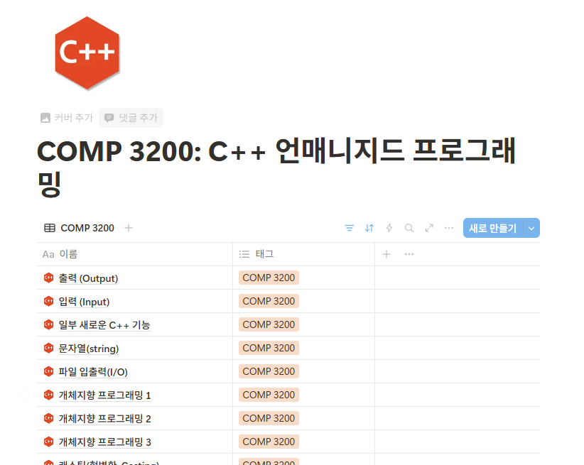 데이터베이스 기능을 활용하여 POCU 아카데미에서 배운 내용을 정리해두고, 태그로 필터링해서 과목별로 내용을 찾아읽기도 했다.